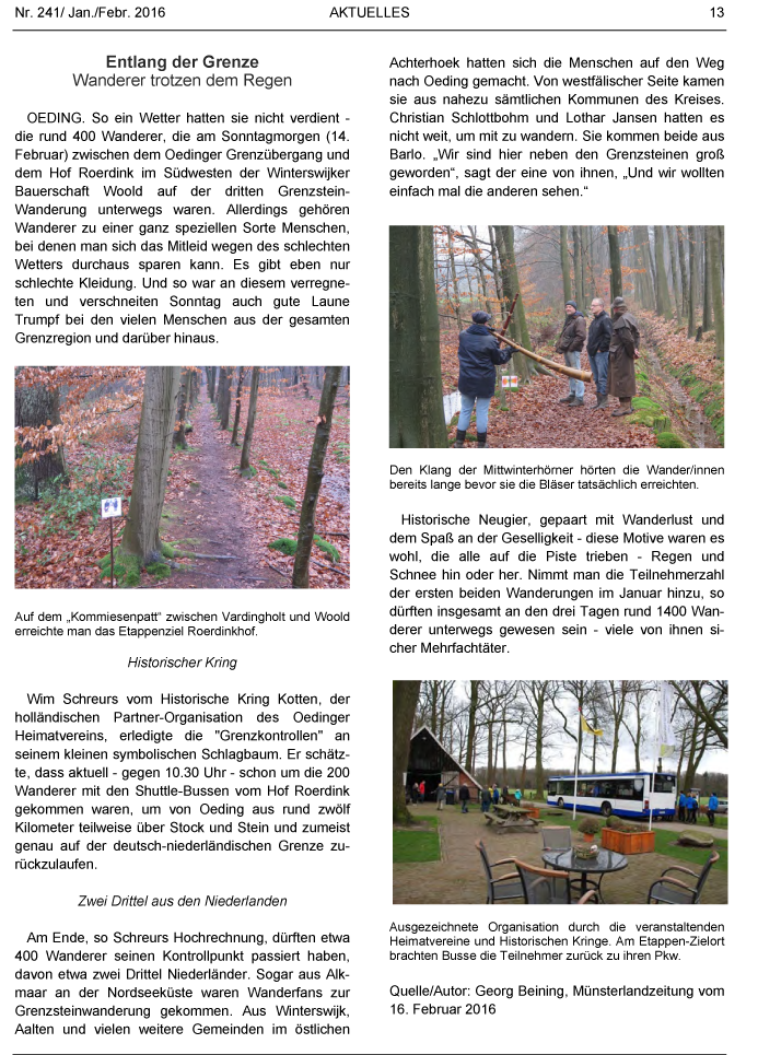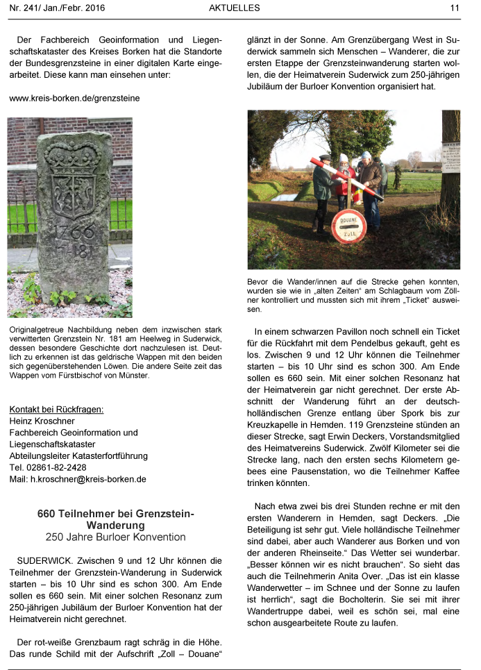 Heimatbrief des Kreises Borken würdigt die Grenzsteinwanderungen